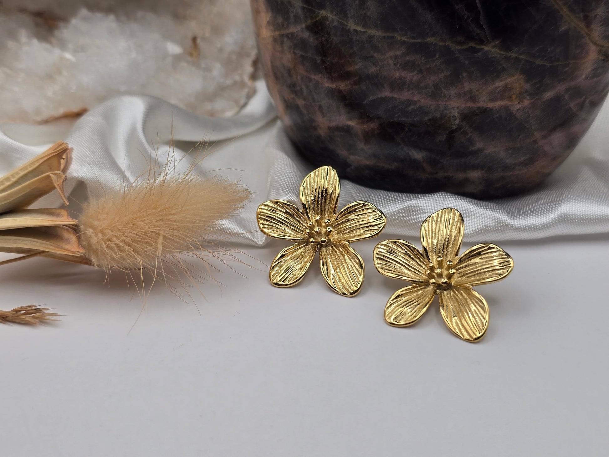 Boucles d’oreilles “Fleur Sculptée” – Doré ou Argenté