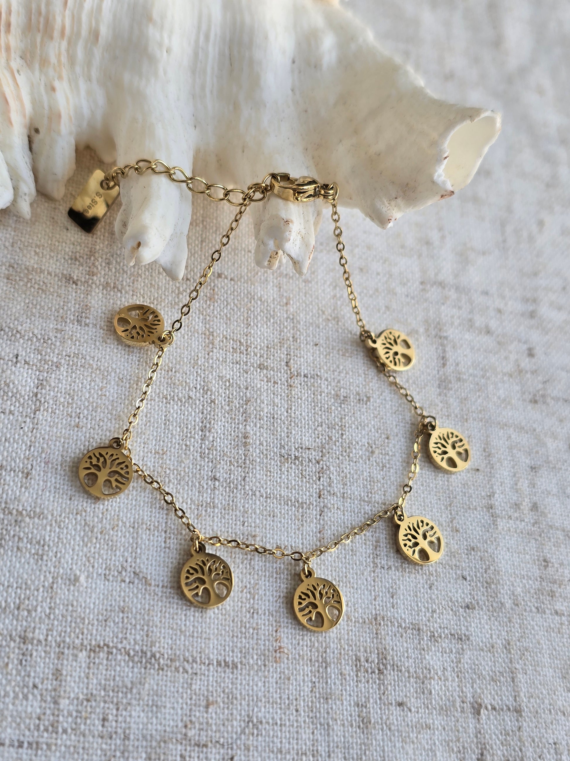 Sublimez votre poignet avec ce bracelet délicat et symbolique, orné de multiples petits pendentifs représentant l’Arbre de Vie, un motif sacré évoquant la force, la croissance et l’harmonie.