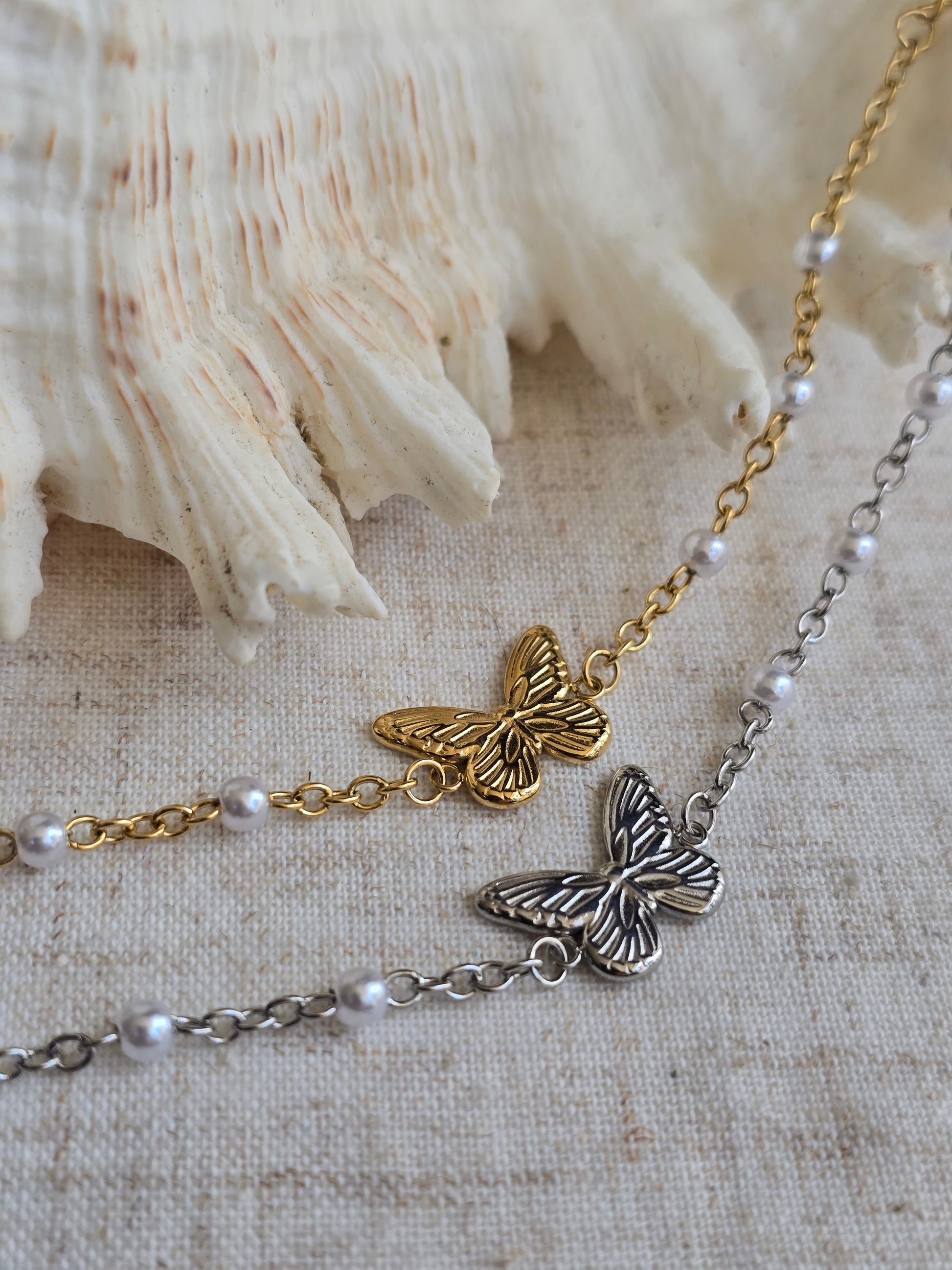 Bracelet papillon reglable en acier inoxydable, disponible en doré et argenté