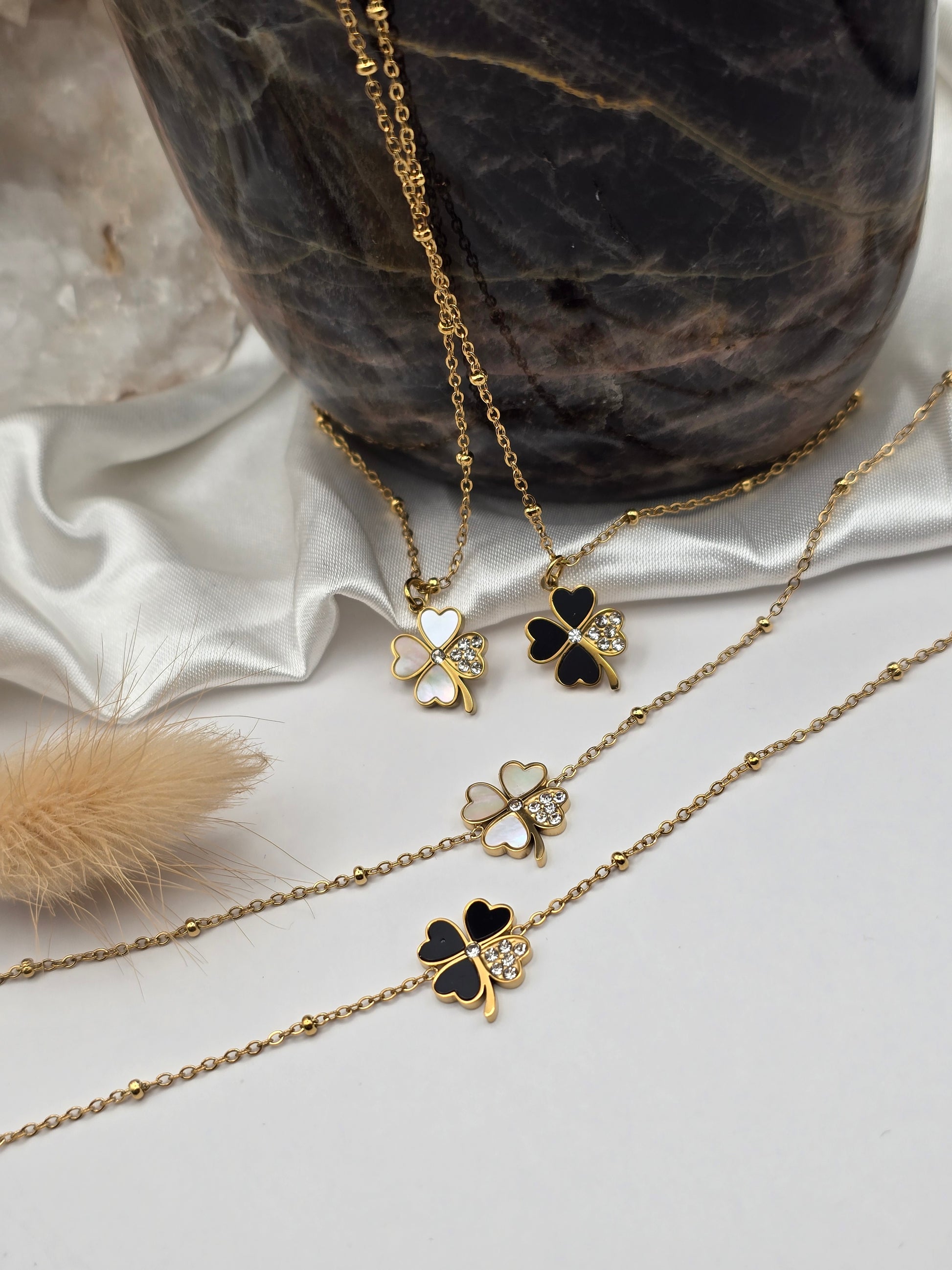 Bracelet “Trèfle Porte-Bonheur” – Noir ou Nacre