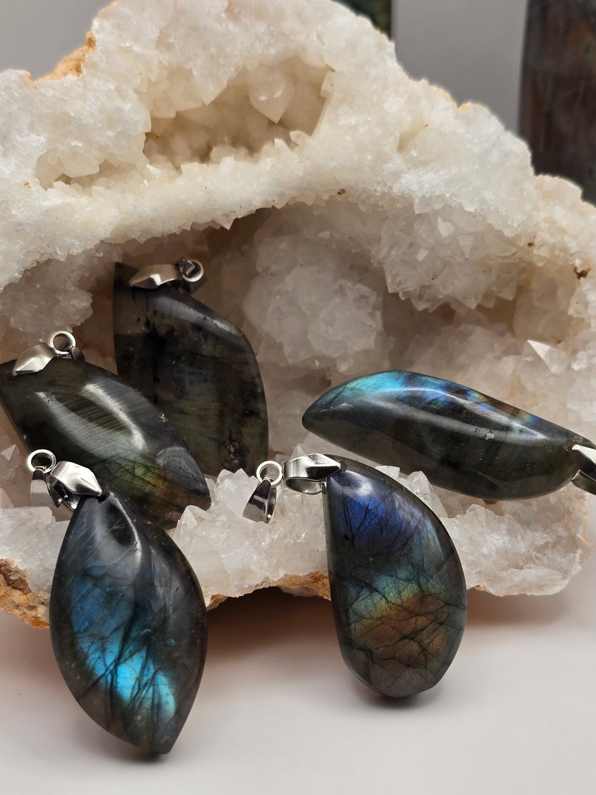 Pendentif poli de labradorite avec chaîne en acier inoxydable