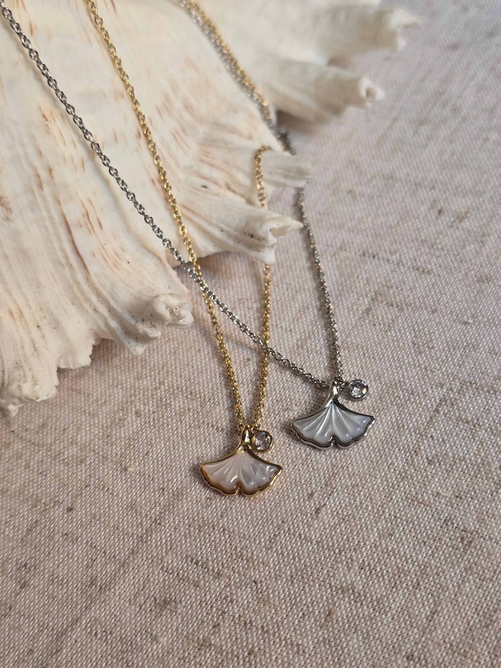 Monté sur une chaîne en acier inoxydable, ce collier se décline en version argentée ou dorée, gardant toujours son éclat intemporel.