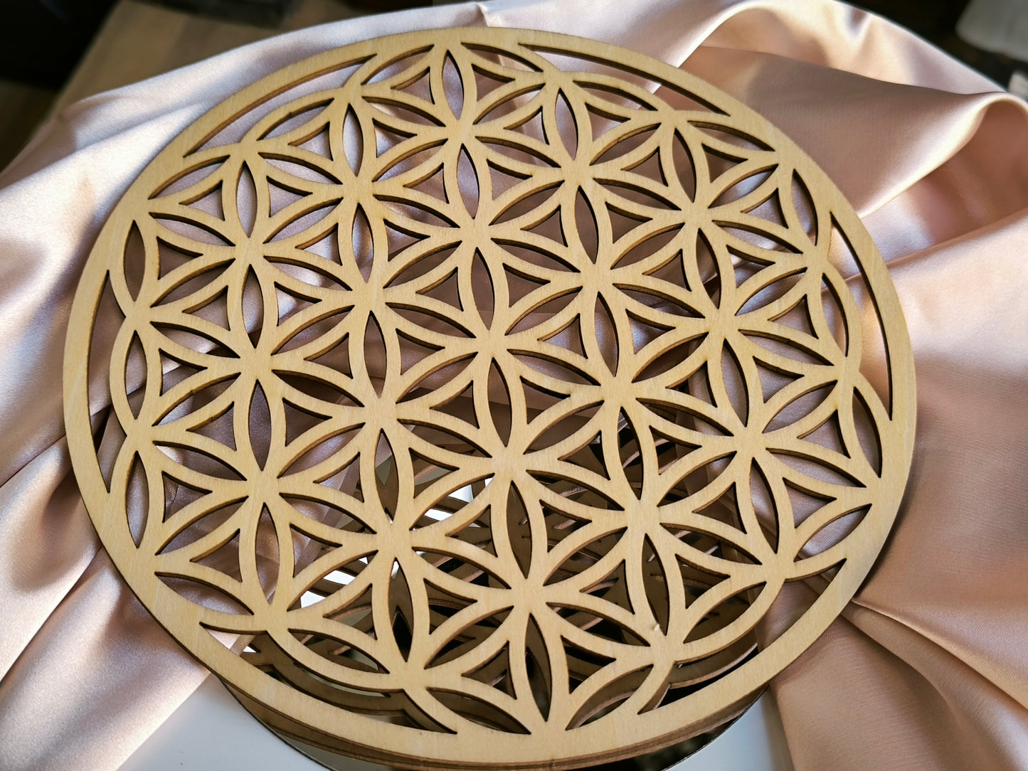 La fleur de vie assure la purification de la pierre et la recharge également , elle peut être aussi accrochée au mur pour une décoration symbolique et énergétique