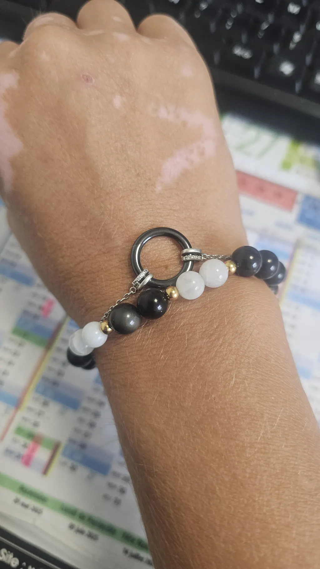 Fait en obsidienne, œil du tigre, lune blanche et de mon intention de protection, il formera une bulle de protection autour de vous tout en vous apportant zenitude et sérénité.