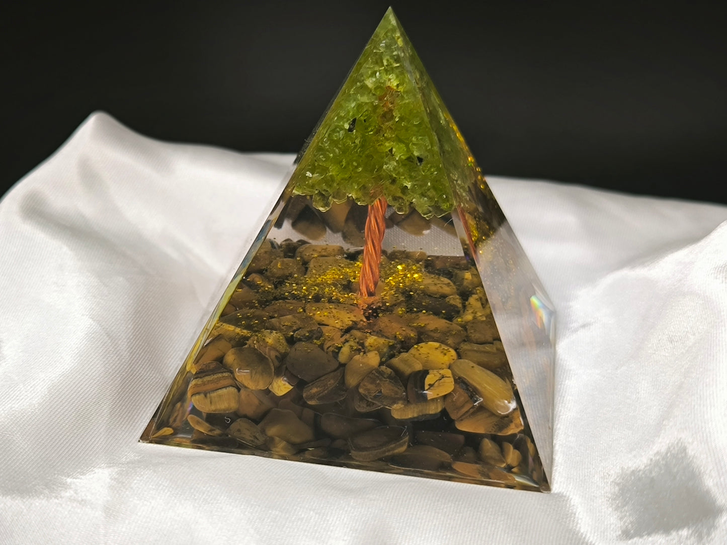 Orgonite en Oeil de Tigre & Péridot avec Arbre de Vie