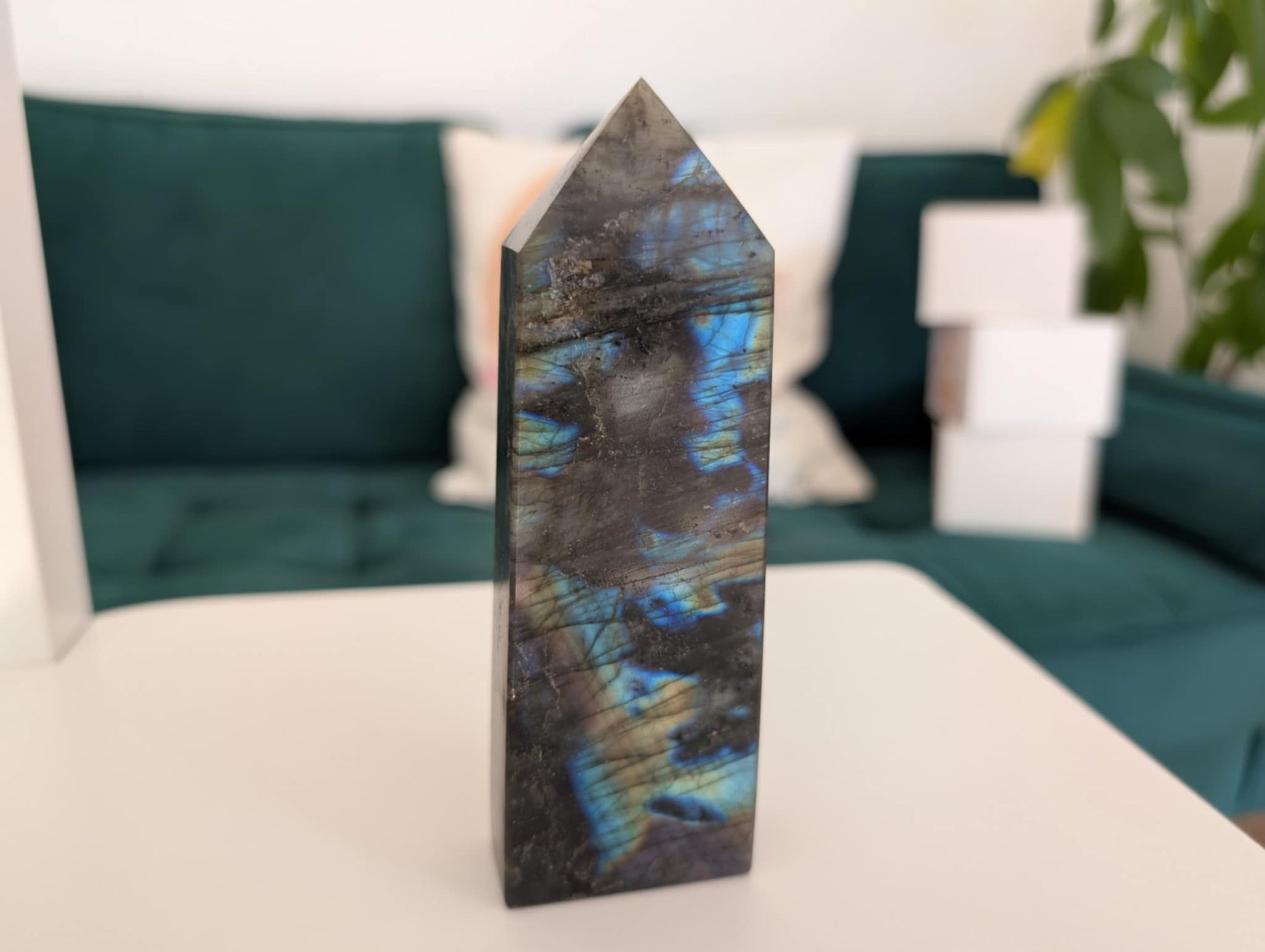Apportez une touche de mystère et d'élégance à votre intérieur grâce à ce lot exceptionnel de pointe en Labradorite , soigneusement polies pour révéler leurs magnifiques reflets irisés. Connue pour sa beauté envoûtante et ses propriétés énergétiques puissantes, la labradorite est la pierre de protection par excellence