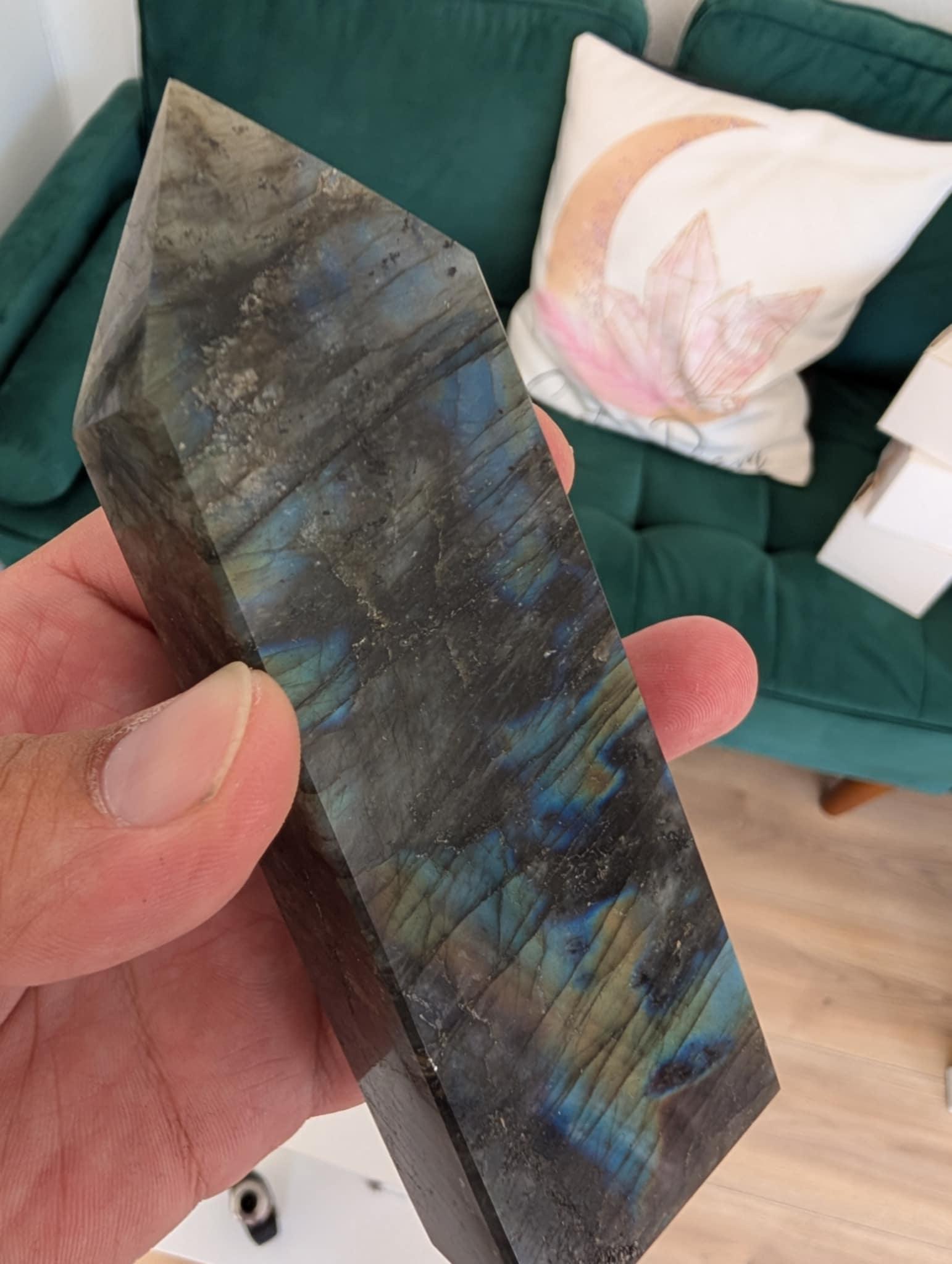 Bienfaits de la Labradorite : Protège contre les énergies négatives , stimule l'intuition et la clairvoyance et favorise l'équilibre émotionnel et mental Idéale pour les thérapeutes, les personnes sensibles ou en recherche de spiritualité