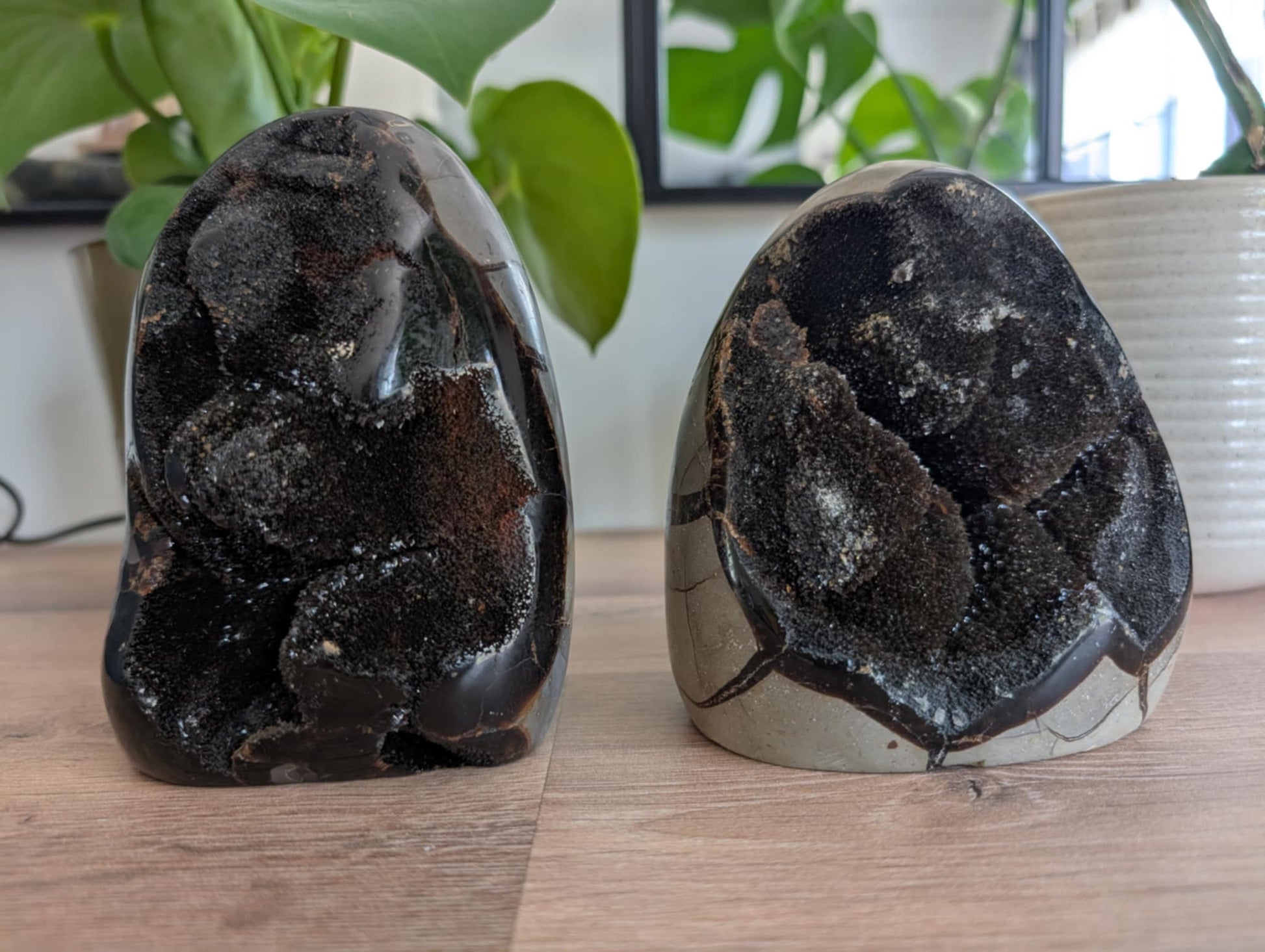 Découvrez deux superbes formes libres en Septaria sauvage de très haute qualité (AA)