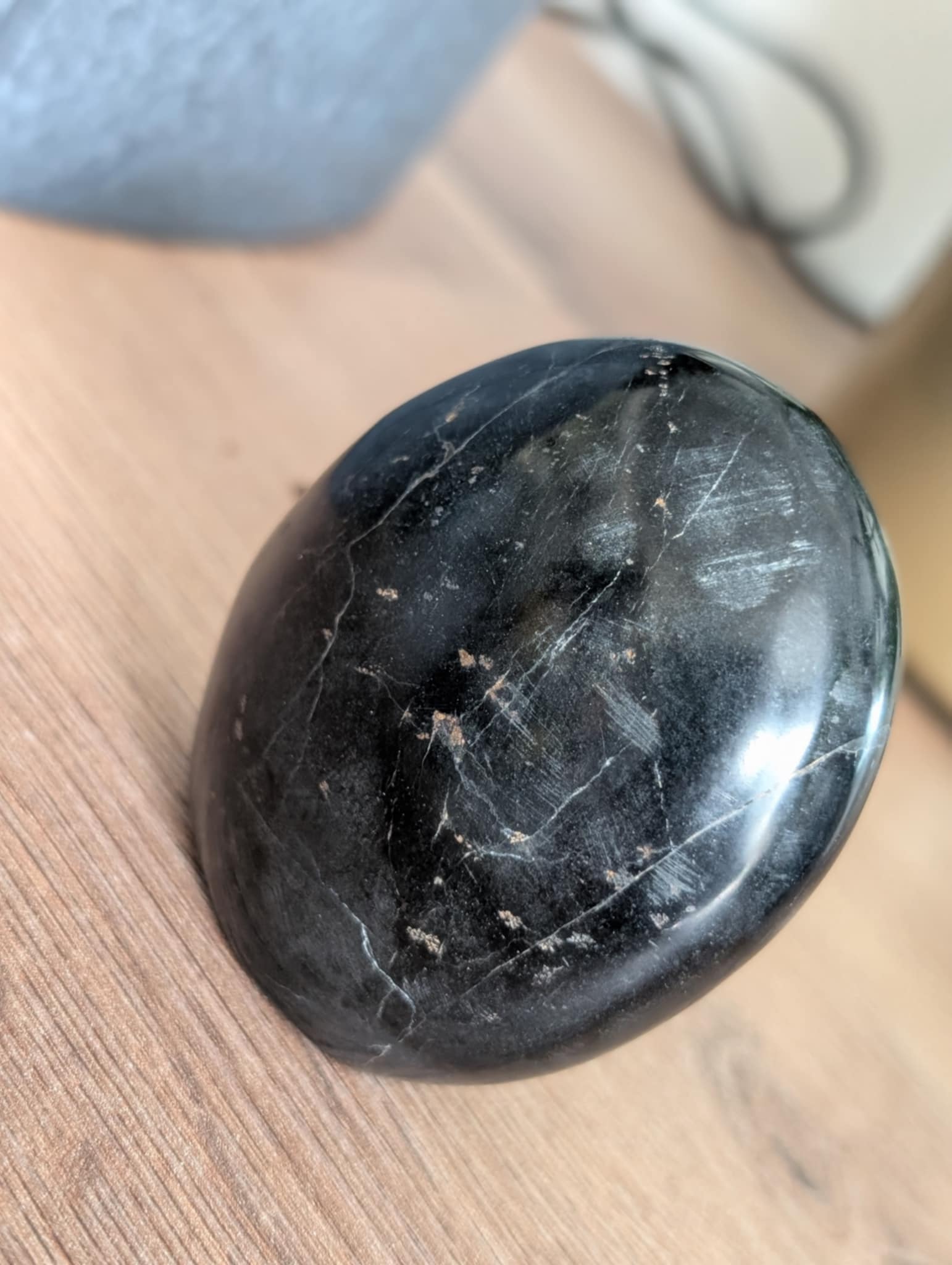 Cette forme libre polie met en valeur toute la beauté brute de cette pierre puissante. Placée dans une pièce , elle favorise l’enracinement, l’équilibre et le calme intérieur